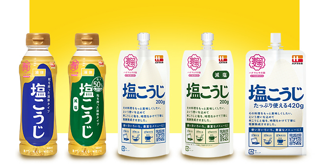 ハナマルキではお客様の様々なニーズにお応えし、塩こうじシリーズの豊富なラインナップを取り揃えています。