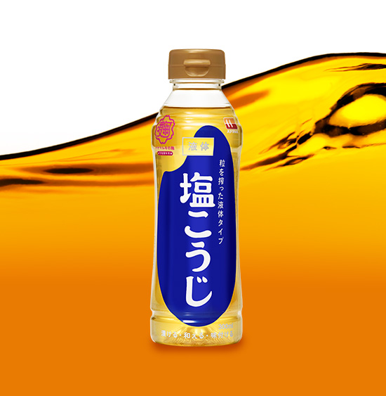 「液体塩こうじ」は、粒の塩こうじを搾った液体タイプの塩こうじです。液体なので漬け込みやすい・焦げにくい・計りやすいといったさまざまなメリットがあります。肉や魚だけでなく、炒め物やスープ、スイーツからパンまで、幅広いジャンルの料理に使えるようになりました。