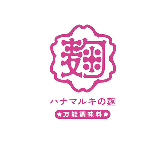ハナマルキの「花」を想像させるピンク色のデザインで、ハナマルキ 塩こうじシリーズのシンボルです。
